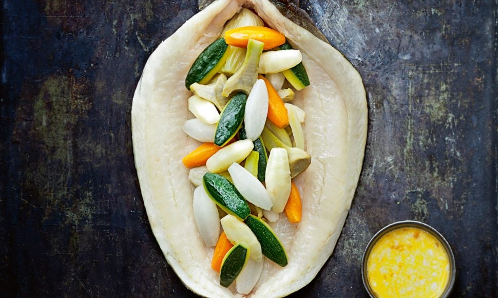 Habillez et écaillez le lieu, puis levez-le en portefeuille par le dos. Procédez délicatement afin de ne pas séparer la chair de la tête et de la queue. Désarêtez, puis réservez. Vous pouvez appliquer cette technique de préparation sur les poissons plus petits comme le merlan de ligne ou le rouget barbet.