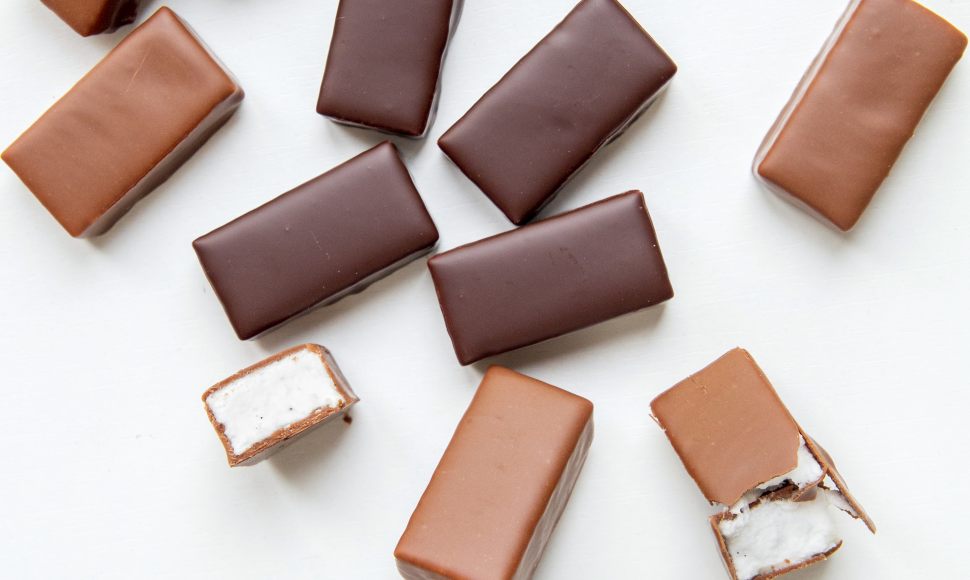 Une guimauve traditionnelle incroyablement légère, dans sa robe de chocolat.