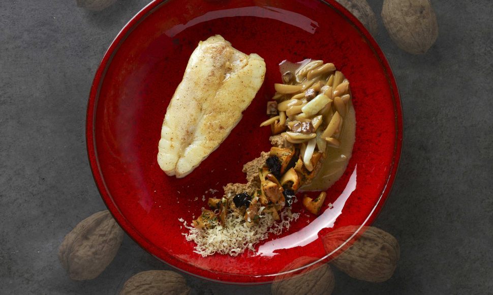 Haricot de soissons, noix fraîche pilée, turbot de l’île vierge