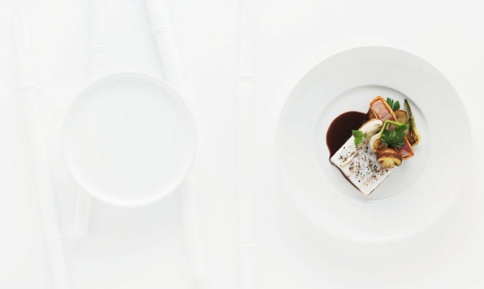 Hirame de joban en filet à plat, oignon nouveau, kinoko, poitrine paysanne « tonkatsu »