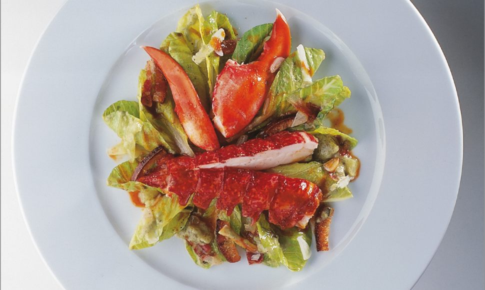 Faire cuire les homards dans de l’eau salée aromatisée de fenouil sec et de poivre noir. Compter 6 minutes pour les queues et 5 minutes pour les pinces. Décortiquer ces dernières en veillant à ne pas laisser de cartilage.