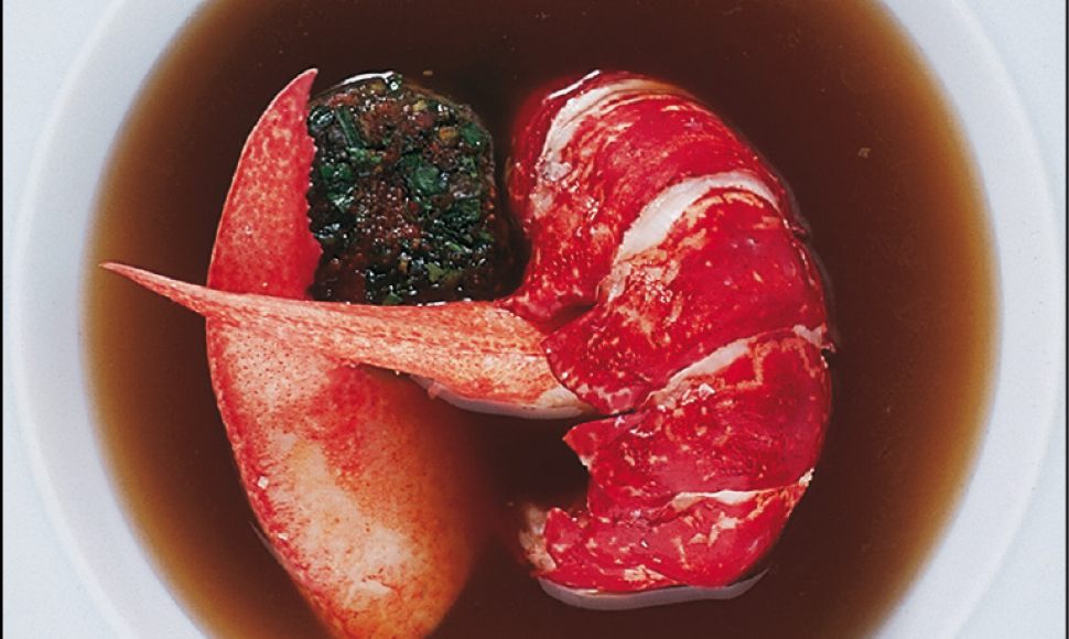 Le homard est un crustacé décapode à la chair ferme et savoureuse. Dans sa recette, Alain Ducasse l’accommode à une nage épicée à base de légumes et piment d'Espelette ainsi qu'à un hachis de corail préparé. Une assiette iodée à souhait !