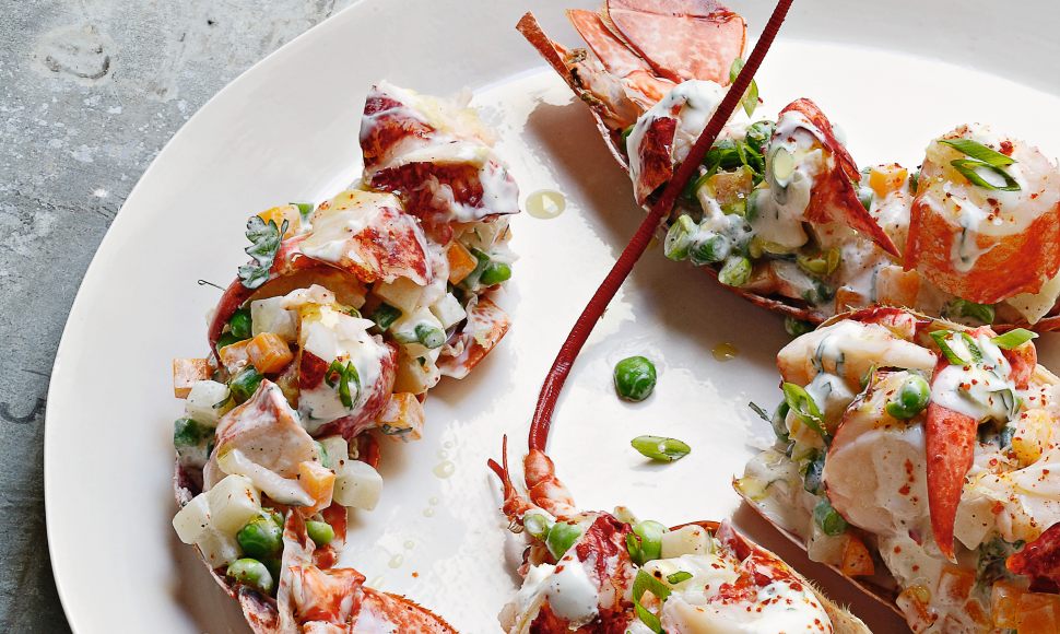 Taillez les chairs en morceaux. Ajoutez-les dans la jatte de légumes. Épluchez, lavez, ciselez 2 cébettes et déposez-les dans un bol. Ajoutez-y le corail du homard, 1 yaourt à la grecque, le jus d’1 citron non traité, un peu de son zeste râpé et 1 pincée de piment d’Espelette. Goûtez et rectifiez l’assaisonnement en sel et poivre du moulin. Versez cette sauce dans la jatte des légumes et du homard. Remuez-les avec délicatesse, puis répartissez-les dans les carapaces des demi-queues et des demi-têtes. Déposez-les dans un plat. Réservez-le au frais jusqu’au moment de servir.