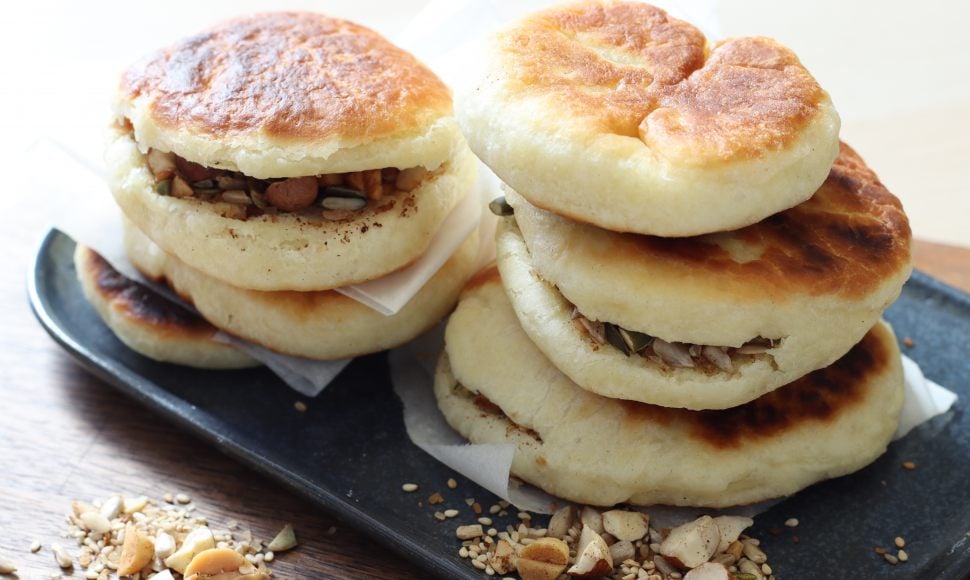 Star de la cuisine de rue en Corée du Sud, l’hotteok se présente comme un pancake doré, à déguster chaud, garni de fruits secs, de sucre et de cannelle.