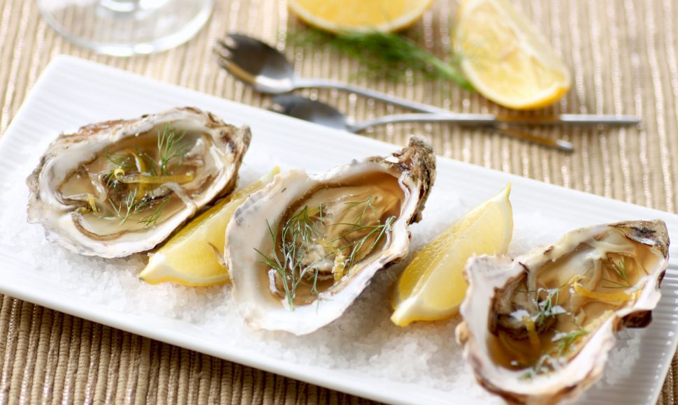 Placez les huîtres dans un plat ; pour ne pas qu'elles ne bougent dans le plat, calez-les sur un lit de gros sel. Parsemez de quelques pluches d'aneth et de zeste de citron. Laissez reposer au frais pendant 2 heures avant de servir à l'apéritif. Pour une présentation plus chic, dressez les huîtres en gelée dans des coupes à champagne.