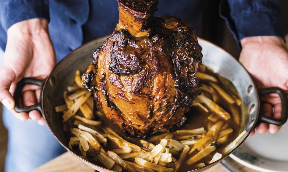 Une recette à cuisiner et partager avec des grandes tablées : un jarret de veau de braisé et laqué, accompagné de blettes fondantes.