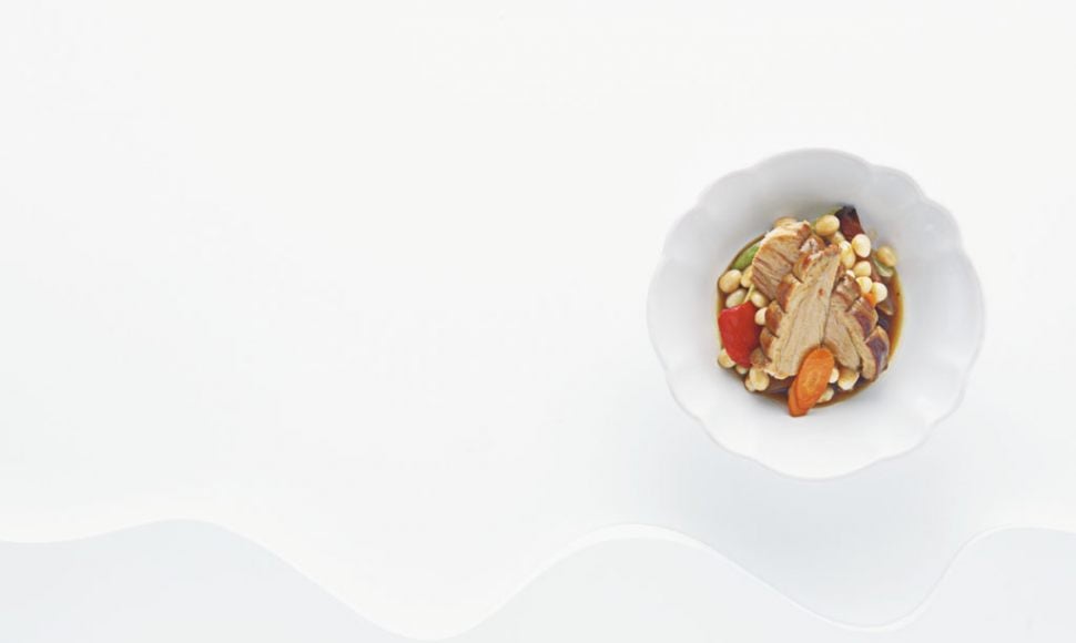 Jarret de veau longuement braisé au four, ragoût de haricots cocos « façon cassoulet »