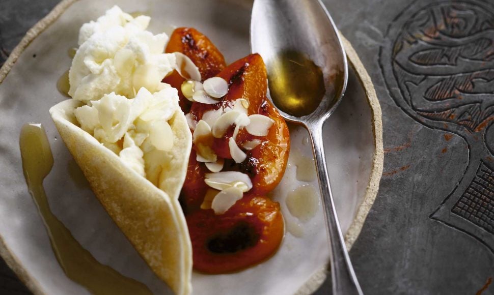 Katayef bel mechmod : crêpe à la crème de lait et abricots poêlēs