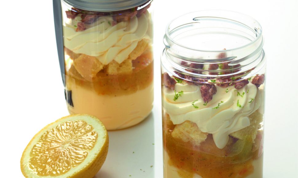 Le jour même, récupérez deux suprêmes dans le citron vert et deux dans le citron jaune. Taillez-les en brunoise, puis mélangez-les avec la marmelade et la fleur de sel.