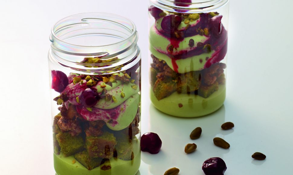 Le Kreatif de Christophe Michalak ? Une création présentée en verrine et qui met en avant un jeu de contrastes entre douceur et fraîcheur.