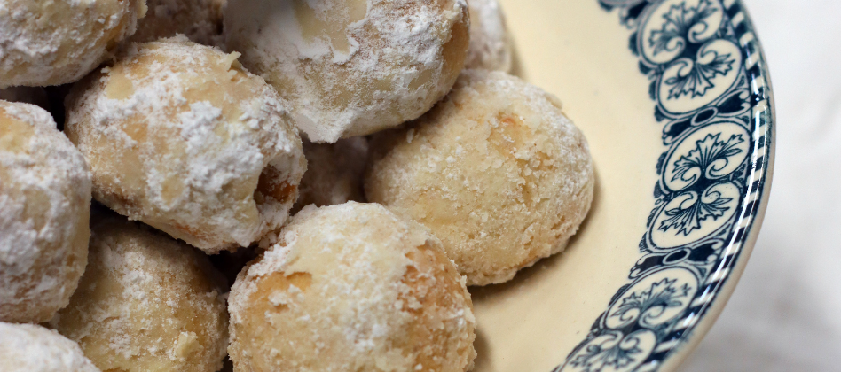 Les kourabiédès sont des biscuits sablés aux amandes préparés en Grèce pendant les fêtes de fin d'année.
