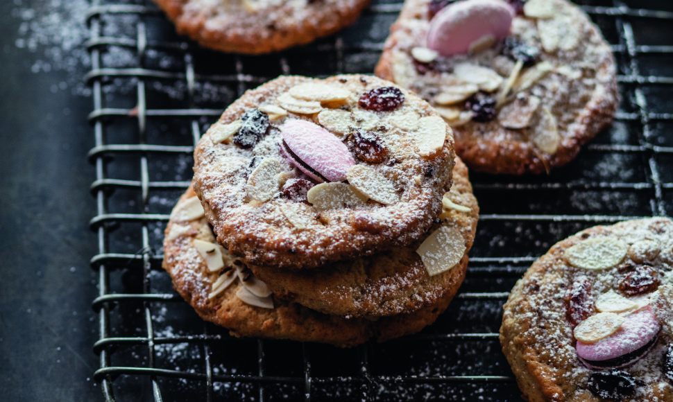 Le jour même, préchauffez le four à 180 °C (th. 6). Formez 10 boules avec la pâte. Étalez la pâte en couche mince à l’aide d’un rouleau à pâtisserie et disposez-la sur une plaque généreusement beurrée. Affinez la pâte à la main, puis couvrez d’amandes effilées et de pignons. Ajoutez une bonne pincée de grains d’anis et une dragée sur chaque fougasse. Faites cuire sans ventilation pendant 15 à 20 min. Soulevez la fougasse avec une spatule pour vérifier la cuisson. Saupoudrez de sucre glace et servez froid.