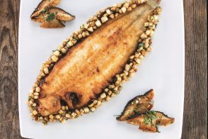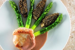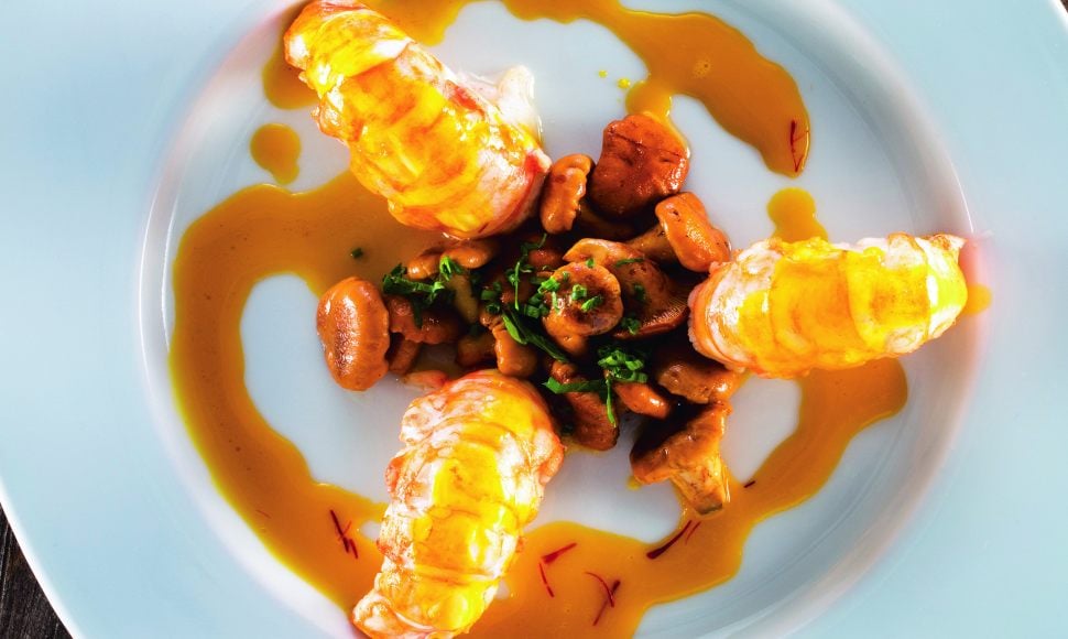 Une recette terre et mer, à base de petites girolles de la forêt landaise, de grosses langoustines simplement saisies, relevées d’une sauce légèrement safranée. Un plat d’été à la fois complexe en termes d’arômes et goûteux grâce au croquant de la langoustine et de la girolle à peine cuites
