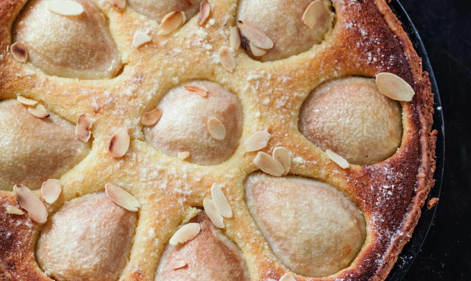 Préparez la pâte sablée en mélangeant d’abord le sucre, la poudre d’amande et la farine. Ajoutez le beurre, l’œuf et le sel. Faites une boule et réservez au froid.