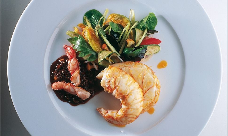Langouste royale rôtie en carapace comme une sauce poivre – crustacés