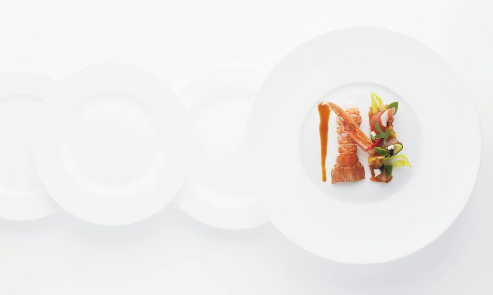 Langoustine de casier rôtie en carapace, jus de presse et steak de tomate