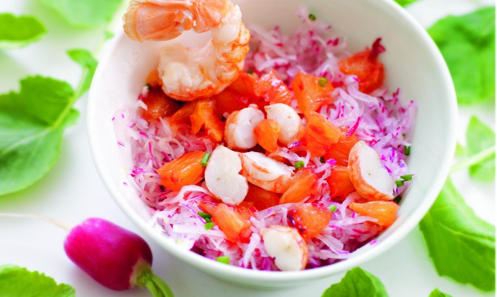 Alain Ducasse : "Archi-fraîches, les langoustines ! Pas d’orange sanguine au marché ? Pas de problème, prenez une normale. Ce sera tout aussi bon. Vous pouvez laisser les queues des langoustines entières, il sera sûrement content de les manger tout seul avec les doigts."