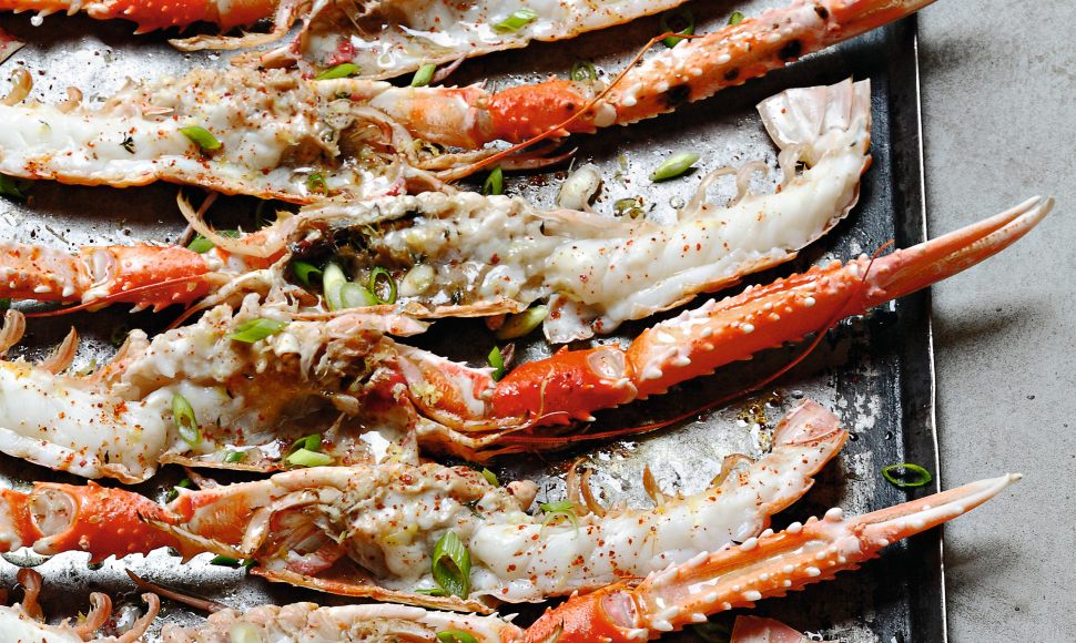 Régler le gril du four à la chaleur maximum (240 à 250°C). Enfourner le plat ou la plaque de langoustines pour 2 minutes seulement.