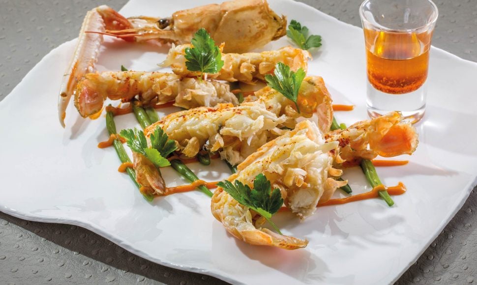 Faire chauffer une poêle antiadhésive avec un peu d'huile d'olive. Colorer très rapidement les langoustines côté chair pour les retirer aussitôt.