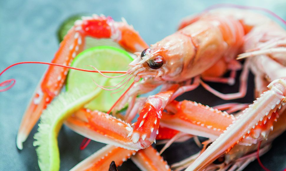 Langoustines vivantes cuites vapeur, vinaigrette aux agrumes