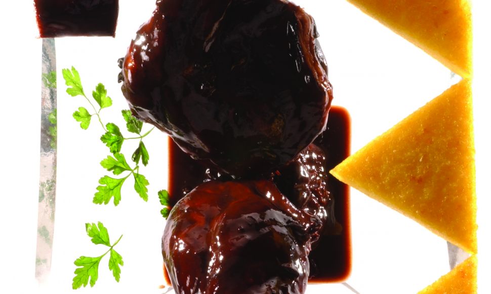 Confectionner un bouquet garni avec les queues de persil, le thym et le laurier. Éplucher les carottes et les laver. Effiler le céleri. Peler l’oignon et les échalotes. Tailler ces légumes en mirepoix. Chauffer un filet d’huile d’olive dans une cocotte, faire suer la mirepoix et les gousses d’ail en chemise écrasées et la blondir. Ajouter le bouquet garni, le genièvre et les clous de girofle, mouiller avec le vin rouge et porter à ébullition. Débarrasser et refroidir.