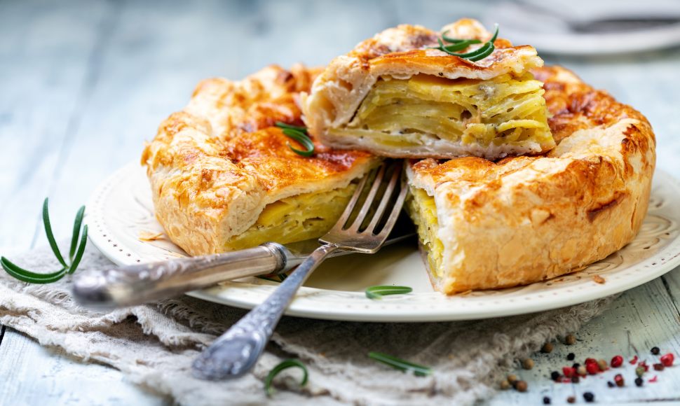 Christine, l’épouse de Patrick, l’expert en gâteau battu, m’a fait la surprise d’apporter à notre banquet cette spécialité picarde née au XIXe siècle. Je n’ai donc pas suivi la préparation de la recette mais elle a bien voulu me donner sa recette, entendant mes « hmmmm ! » à la dégustation. Le bisteu n’est rien d’autre qu’une tourte de pommes de terre au lard, préparée avec de la pâte brisée ou feuilletée. Croustillant à l’extérieur et moelleux à l’intérieur, ce plat paysan est irrésistible. À condition que vous utilisiez de bons produits, cela va sans dire. À déguster chaud ou froid avec une salade. Cette recette est devenue un de mes classiques.