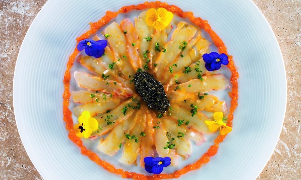 Le carpaccio de langoustines au caviar d'Aquitaine