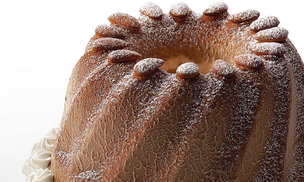 Turbinez l’appareil, puis chemisez un moule à kougelhopf de type Silikomart® avec la glace obtenue et réservez au congélateur.