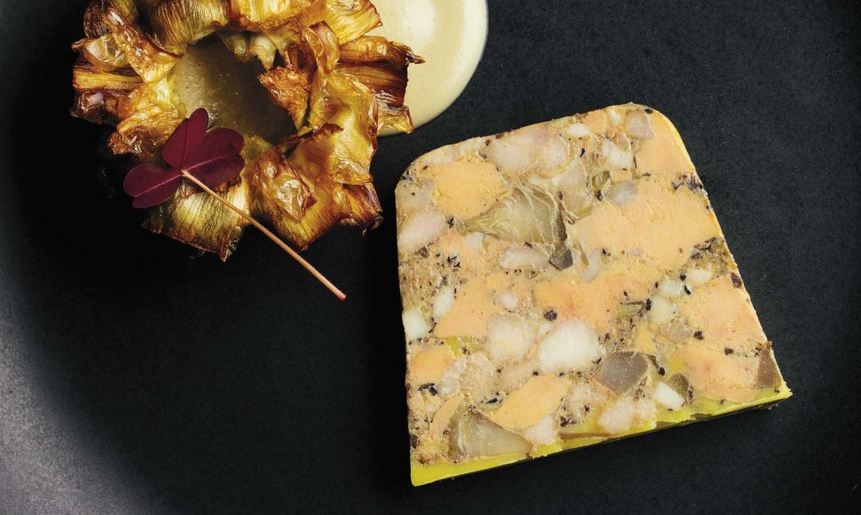 Le pressé de ris de veau, foie gras, truffes et artichauts de jean-françois deport, mof