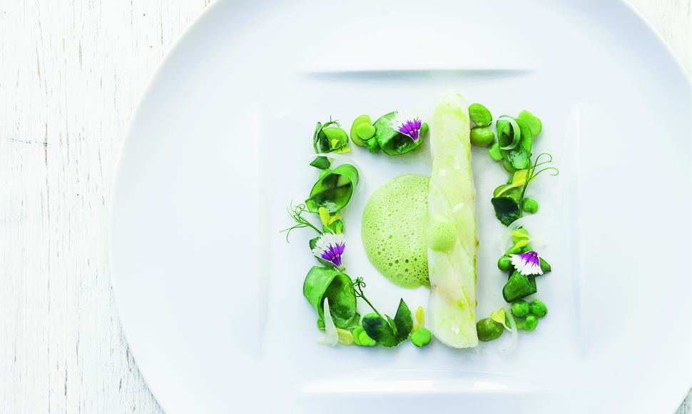 "Voici l’une de mes dernières recettes, complexe car associant plus de quatre saveurs, une audace qui me vient de la découverte du monde des parfums. C’est en effet ma complicité avec le nez Philippe Bousseton qui m’a ouvert l’esprit et m’encourage aujourd’hui à amplifier et multiplier mes accords de saveurs en cuisine. Ce plat est probablement le plus difficile que j’ai eu à mettre au point en terme d’équilibre, car il est dépourvu d’acidité — un aspect souvent flatteur — et s’oriente vers la douceur de la vanille mais aussi vers l’amertume du sencha et du bourgeon de sapin. Le résultat me semble ouvrir le palais à de nouvelles aventures…"