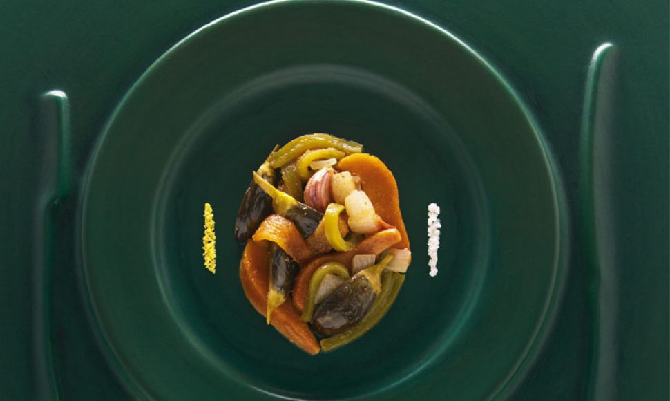 La « Boronia » est une sorte de potée où les légumes et le coing sont cuits à l’eau et parfumés de cumin. Nous avons modifié cette cuisson tout en gardant les saveurs originales du coing et du cumin de ce plat.
