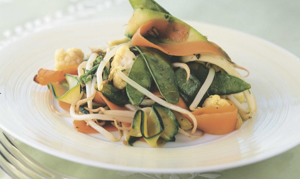 Épluchez les carottes. Taillez-les en fines lamelles à l’aide d’un économe.