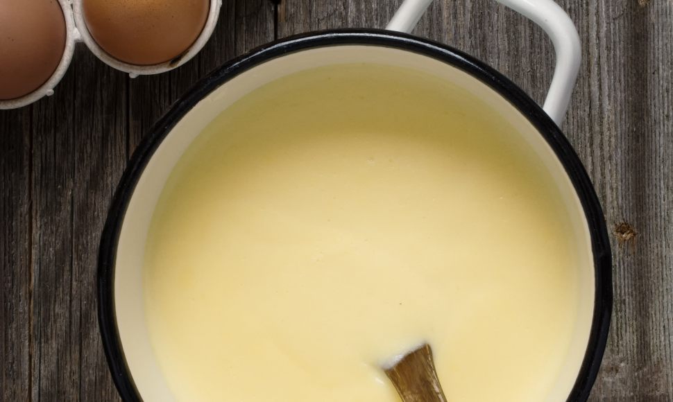 Mettez la gélatine dans l'eau d'hydratation pour la faire gonfler. Faites chauffer le lait avec la crème dans une casserole. Faites-y infuser la gousse de vanille fendue et gratter pendant 20 min. En parallèle fouettez le sucre, la poudre à crème, la farine et les jaunes d'oeufs pour les faire blanchir. Passez le mélange lait-crème vanillé au chinois, puis versez le bouillant sur la préparation blanchie. Remettez le tout dans la casserole et portez à ébullition 2 min. Hors du feu, ajoutez le beurre de cacao. Ajoutez également la gélatine, puis le beurre, et enfin le mascarpone. Mixez à l'aide d'un mixeur plongeant et laissez refroidir rapidement au réfrigérateur pendant 30 min.