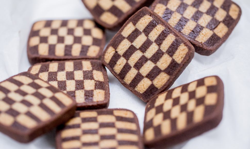 Pour les fêtes, les célèbres bredele alsaciens figurent ici dans une élégante version à damiers, signés Pascal Hainigue, chef pâtissier de l'Auberge de l'Ill à Illhaeusern.