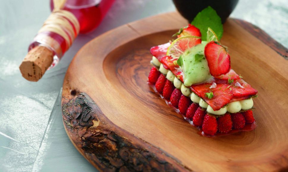 Les feuilles à feuilles font partie de nos classiques en matière de desserts. On retrouve à La Vague d’or deux recettes complètement différentes avec une même approche de création, l’une autour de 12 agrumes et l’autre autour d’une multitude de variétés de fraises.
