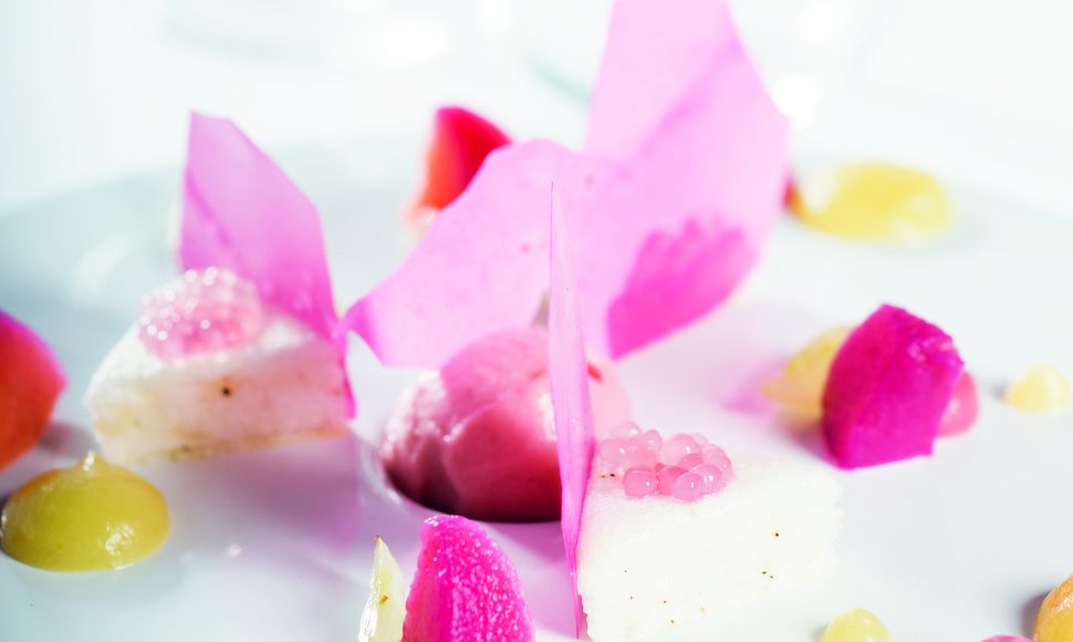 LA VEILLE - Épluchez les coings et coupez-les en quatre. Mettez-les dans une casserole en cuivre avec 2 l d’eau, le sucre et le jus de citron. Faites cuire à feu doux et prolongez la cuisson en fonction de la couleur que vous souhaitez obtenir. Dans une casserole, versez 1 l d’eau et ajoutez les perles du Japon. Faites cuire à feu doux jusqu’à ce qu’elles deviennent translucides. Passez-les alors au chinois et mélangez-les à 300 g de jus de cuisson des coings. Réservez 1 nuit au frais.