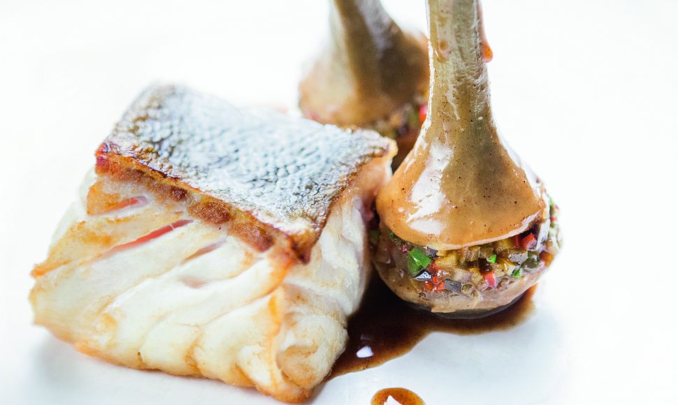 Lieu jaune de ligne au sautoir, artichauts façon tajine