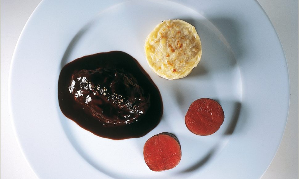 Lever les deux filets en partant du haut des premières côtes jusqu’au bout du râble. Parer à vif les filets, les superposer tête-bêche pour obtenir une forme parfaitement régulière et ficeler tous les 1,5 cm ; dans les intervalles, enrouler de fines bardes de lard de Colonna de 5 mm de largeur.