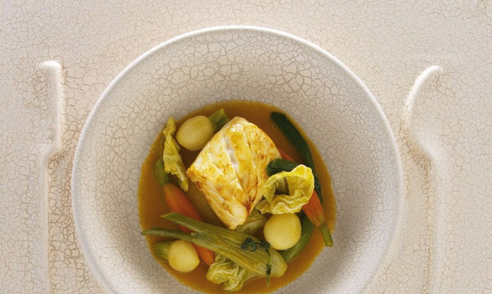 Il est rare de trouver des recettes de lotte (ou de baudroie puisqu’elle se nomme ainsi en Méditerranée) dans les cuisines régionales traditionnelles. La cuisine ligure fait exception. Nous avons modifié la garniture de la lotte, préférant de frais légumes aux pommes de terre.