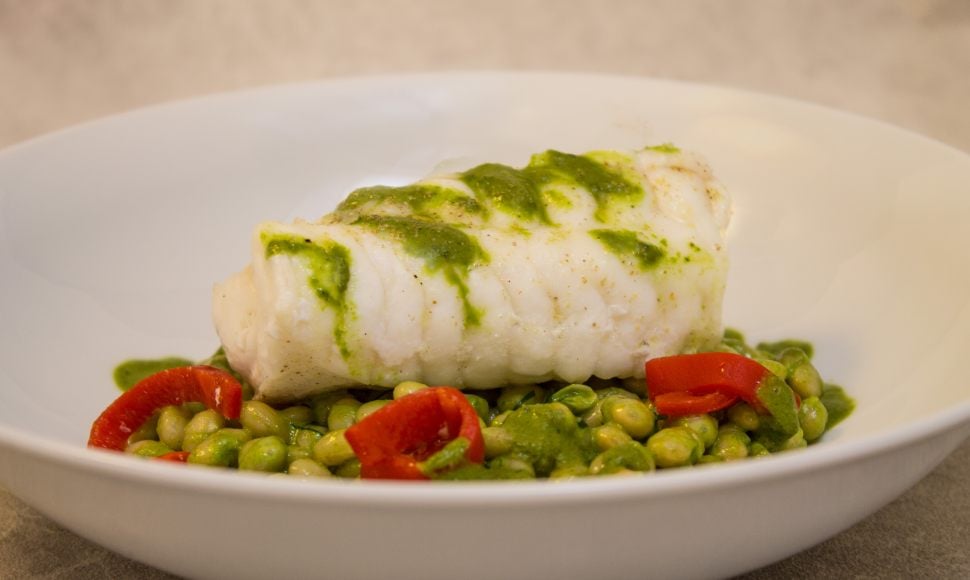 Les haricots cocos, c'est bon pour le corps et les papilles. Ici, ils accompagnent parfaitement la lotte, à la chair délicate et savoureuse. Pistou et piment doux viennent sublimer le tout. Allez-y, c'est permis.