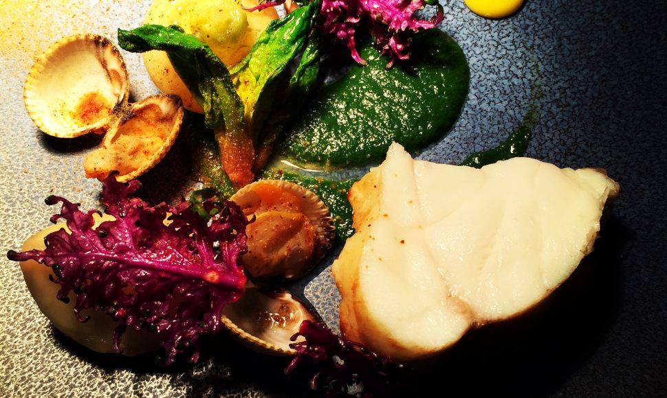 Lotte, purée de coques, persil et citron Meyer