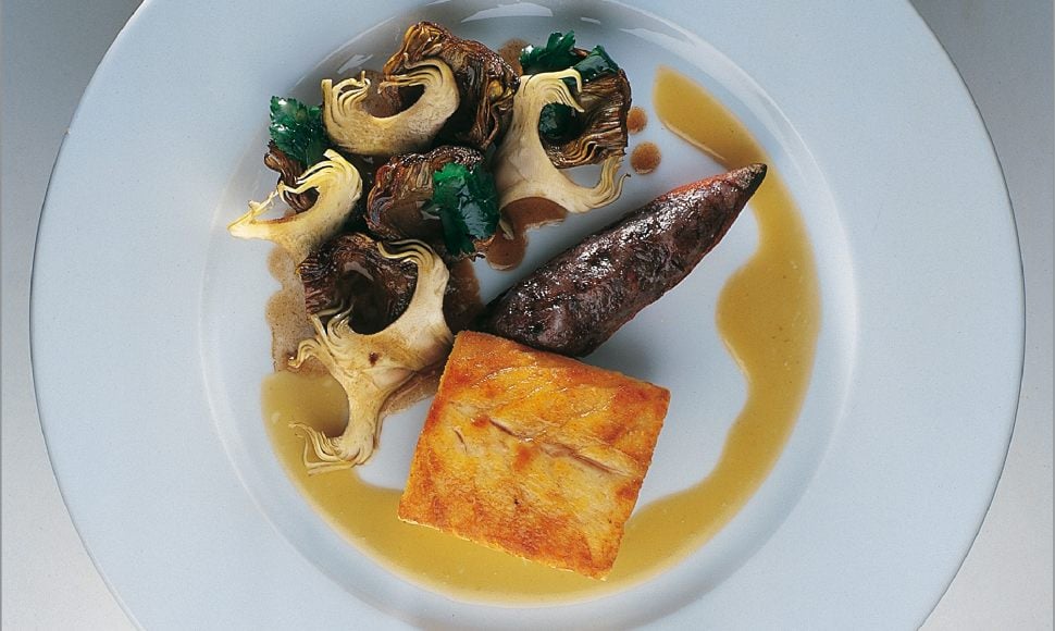 Loup de méditerranée à la plancha, artichauts épineux, une rôtie à l’anchois