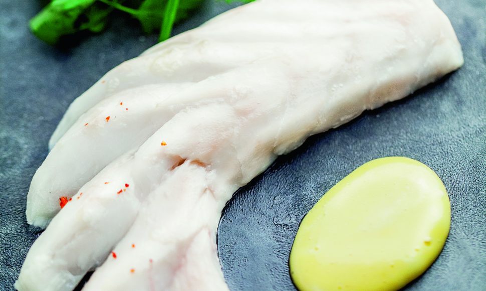 Loup poché, puis refroidi et effeuillé mayonnaise à l’huile d’olive