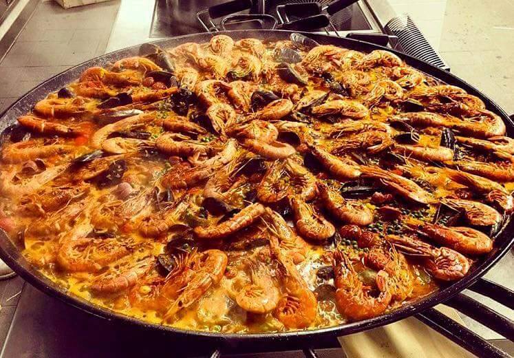 Dans une poêle à paella de 40 cm de diamètre, verser l’huile et cuire les gambas et les langoustines 3 à 4 minutes. Faire revenir les pilons de poulet 5 minutes, ajouter le lapin et assaisonner. Retirer le lapin au bout de 5 à 6 minutes.