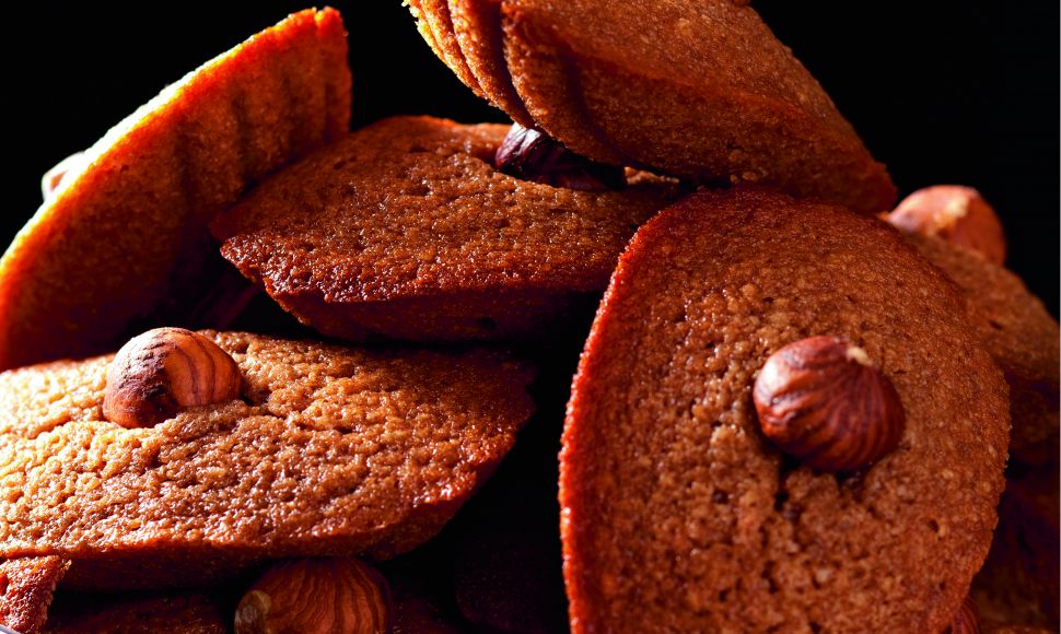 À la sortie du four, démoulez-les aussitôt et posez-les sur une grille. Décorez de noisettes entières. Servez ces madeleines tièdes ou à température ambiante.