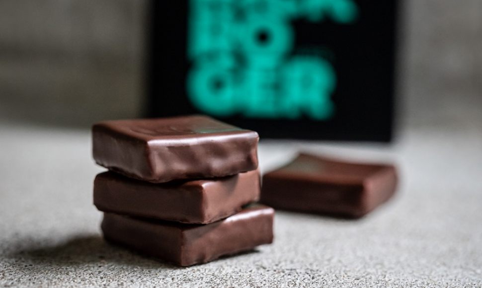 Procéder à la découpe en format carré 28*28mm. Enrober ensuite les intérieurs avec le chocolat.