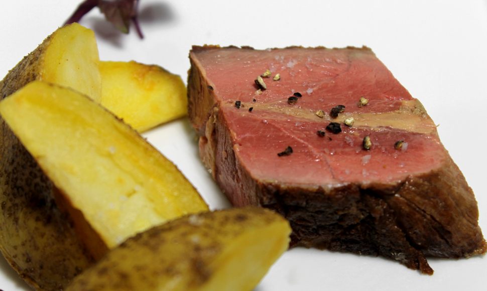 Magret de canard au foie gras, pommes frites à la graisse de canard
