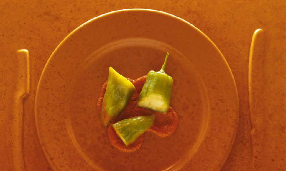 Le « Maimon » est un plat très ancien et populaire, sorte de bouillie (« gachas ») mélangeant pommes de terre, farine, tomates et poivron. La légende veut que sont nom vienne de Maimonide, le célèbre philosophe de Cordoue au XIIIe siècle. Mais alors, tomates et poivrons n’étaient pas encore arrivés en Europe. Nous avons profondément modifié la présentation de cette recette en gardant les mêmes produits.