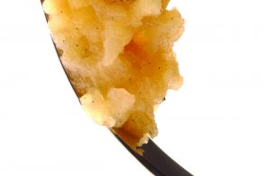 Rincez 50 g de mûres bien mûres. Déposez-les dans une assiette et écrasez-les grossièrement avec une fourchette. Dressez-les sur la purée de maïs au moment de servir.