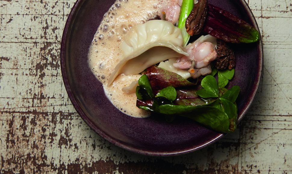 Mandu de grenouilles, sauce réglisse et morilles